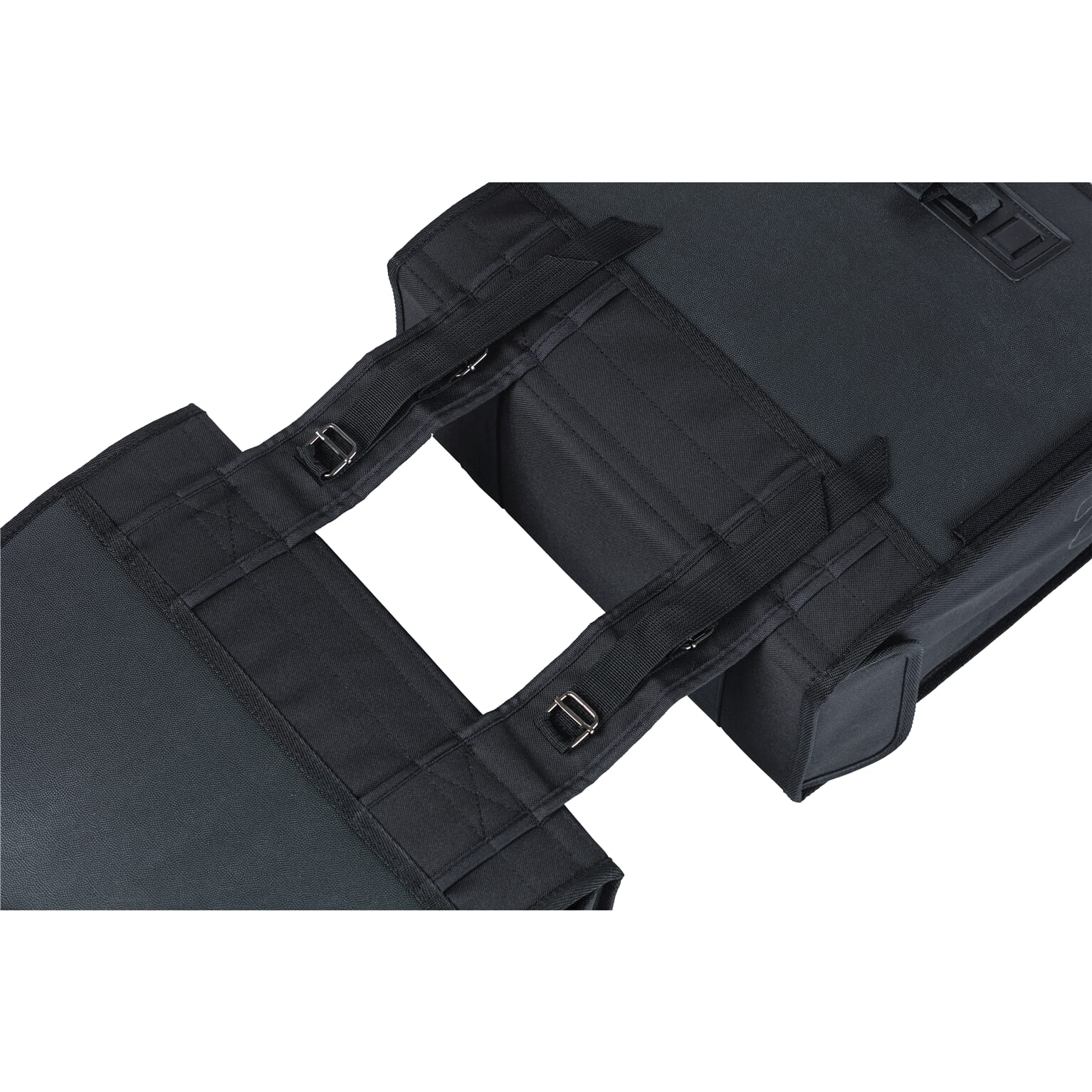 Basil Tour XL dubbele fietstas, waterafstotend 600D polyester, afgerond,extra versteviging,eenvoudig bedienbare sluitingen,Universal Bridge (geschikt voor Basil DBS, MIK, RT platen (apart verkrijgbaar)), voorzien van regenoren, ton sur ton reflectie, 35L,zwart
