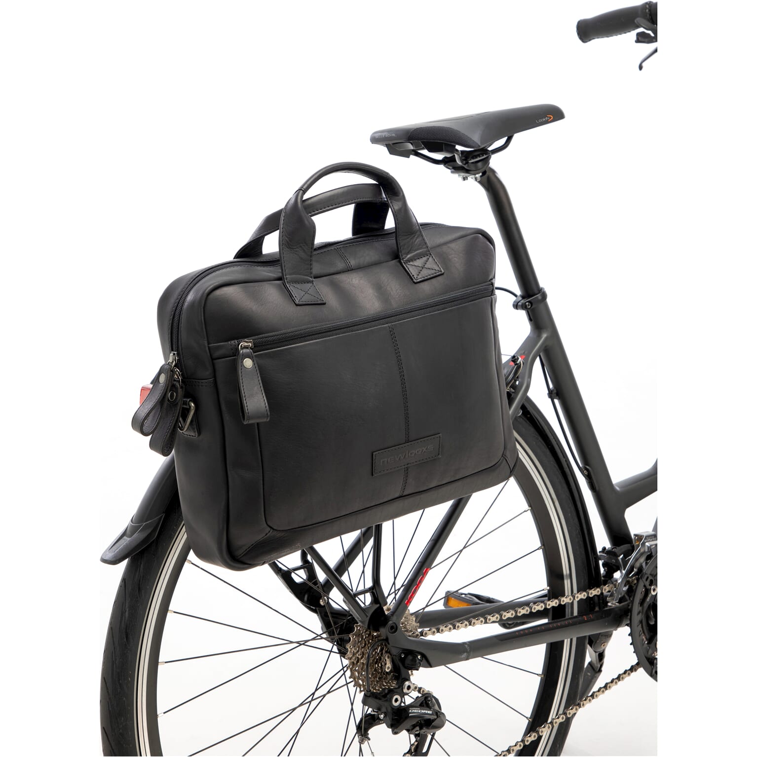New Looxs laptoptas Luko leer,ziet eruit als een gewone werktas maar is speciaal gemaakt voor de fiets. Veiligheid en comfort staan voorop, maar het oog wil ook wat.De Lukois geschikt voor een 15 inch laptop. Aan de achterkant dek je de haken na gebruik af, zodat het een gewone schoudertas is. De schouderband is verstelbaar en afneembaar.