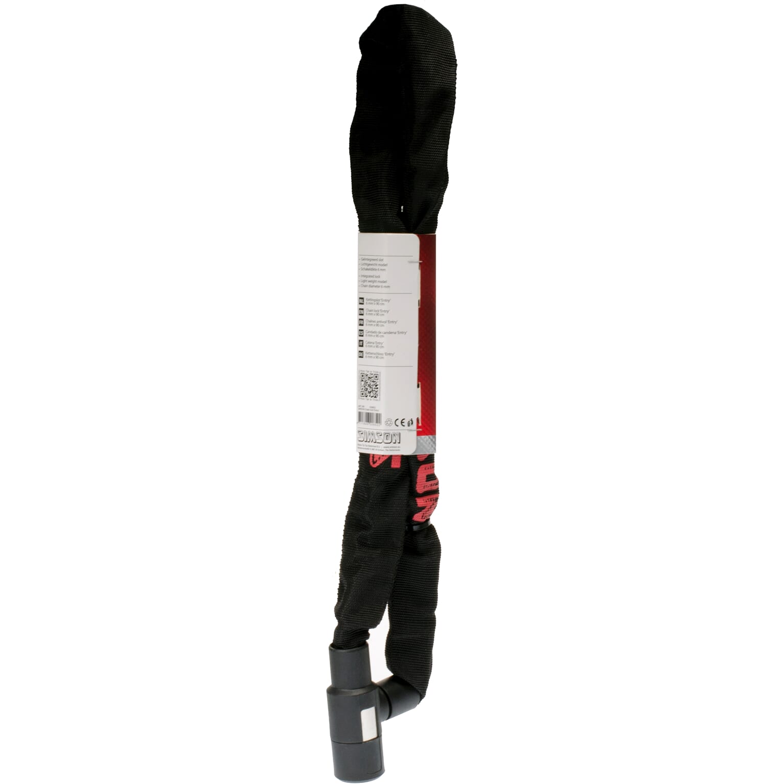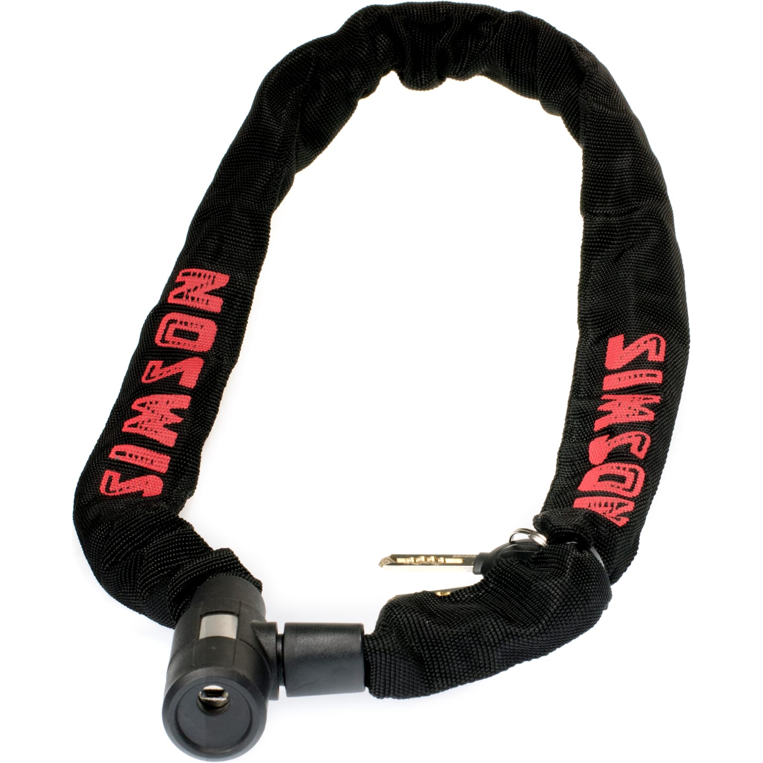 Het Simson Kettingslot Entry is een zeer licht en compact zwart kettingslot met textielhoes om beschadigingen aan het frame te voorkomen. Met een dikte van 6mm en een lengte van 90 cm is het kettingslot compact en eenvoudig mee te nemen. Het geïntegreerde slot zorgt voor optimaal gebruiksgemak om de fiets veilig op slot te kunnen zetten. Het slot wordt geleverd met twee sleutels.