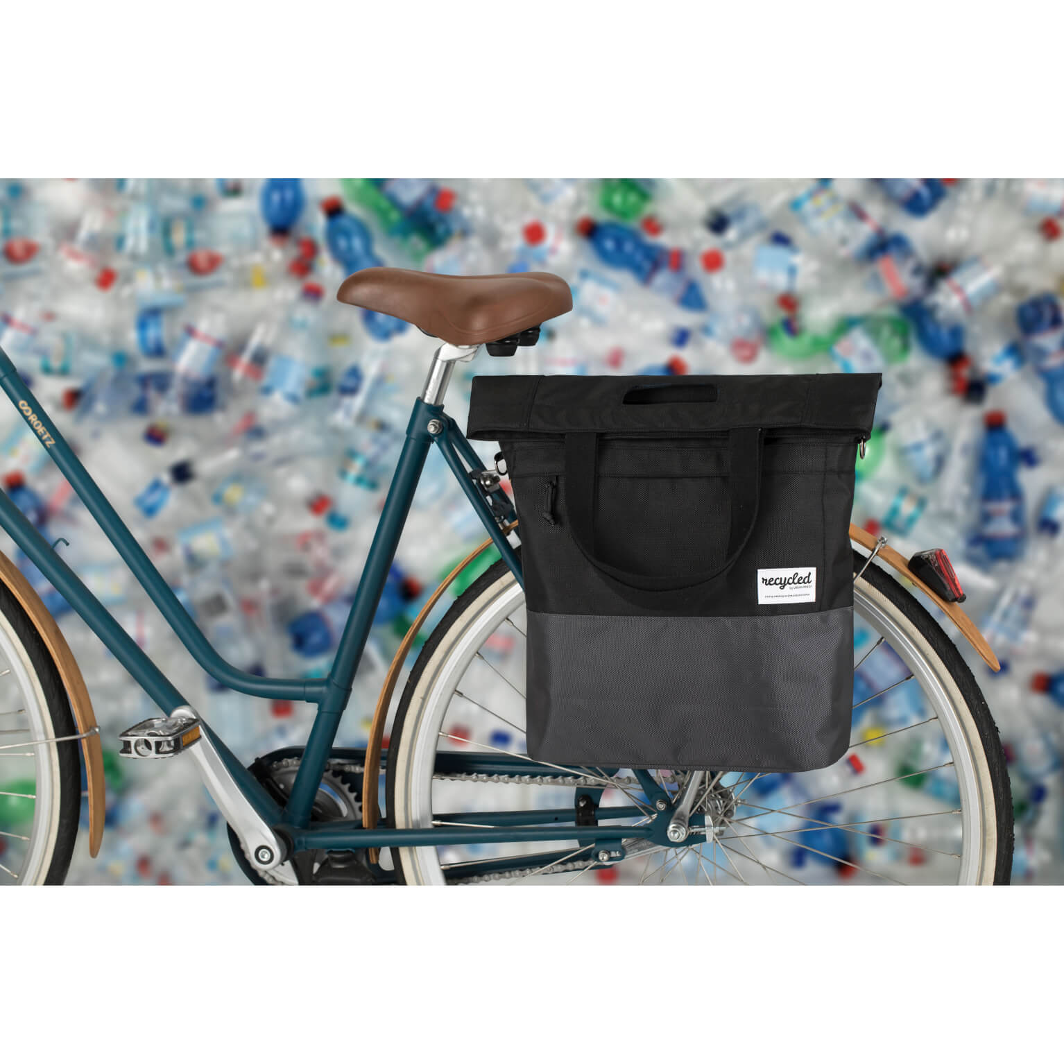 Urban Proof shopper tas 20L recycled zwart/grijs Deze shopper fietstas is zo ontworpen dat hij zeer gebruiksvriendelijk is maar er daarnaast ook nog erg mooiuitziet voor dagelijks gebruik. Het is een duurzame tas gemaakt van gerecycled PET materiaal (RPET). De ruime fietstas heeft een inhoud van 20 liter en kan eenvoudig afgesloten worden met de magnetische sluiting. Met de bevestigingshaken die aande achterkant van de tas zitten, is de shopper tas gemakkelijk achterop de fiets te bevestigen. Deze haken zijn weggewerkt meteen ritssluiting. De URBAN PROOF fietstas heeft eenhandvat, een korte band en een schouderband zodat je de tas op elke wenselijke manier kan dragen. Aan de voorkant en aan de binnenkant zit een los vak om eenvoudig je sleutels, portemonnee en telefoon op te bergen. Voor elk verkocht item doneert URBAN PROOF 5% van de winst aan de stichting Love Not Waste. www.lovenotwaste.com